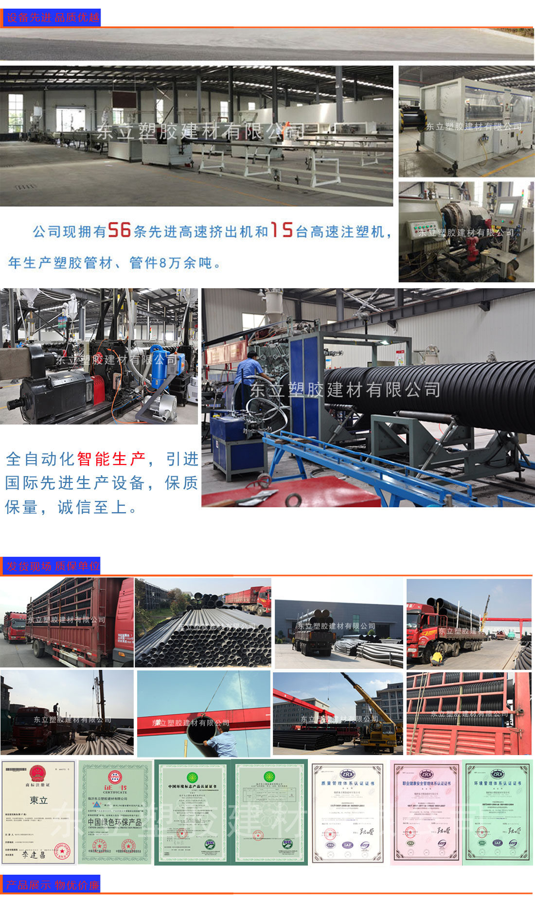 主要生產(chǎn)“東立”品牌塑膠管道,主要產(chǎn)品包括五大系列十六種產(chǎn)品,規(guī)格齊全,產(chǎn)能龐大、供貨及時,設(shè)備先進、質(zhì)量穩(wěn)定,服務(wù)優(yōu)良、滿足客戶的需求。