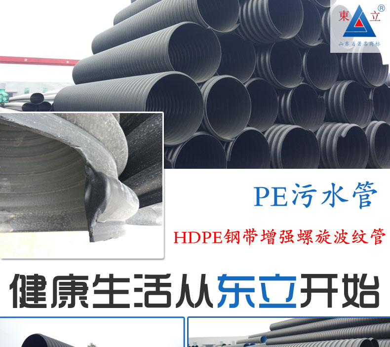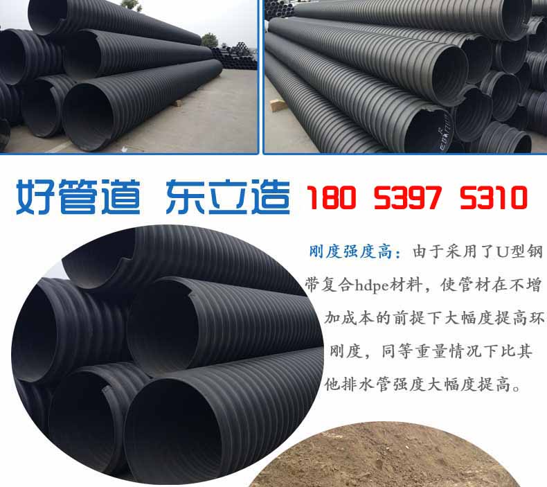 2.大口徑高強(qiáng)度:由于采用了U型鋼帶復(fù)合PE材料,使管材在不增加成本的前提下大幅度提高環(huán)剛度,同等重量情況下比其他塑料排水管強(qiáng)度大幅度提高。可解決重載等一系列問題,大口徑管材優(yōu)勢更加明顯,比水泥管和其它塑料管重量更輕、強(qiáng)度更高。